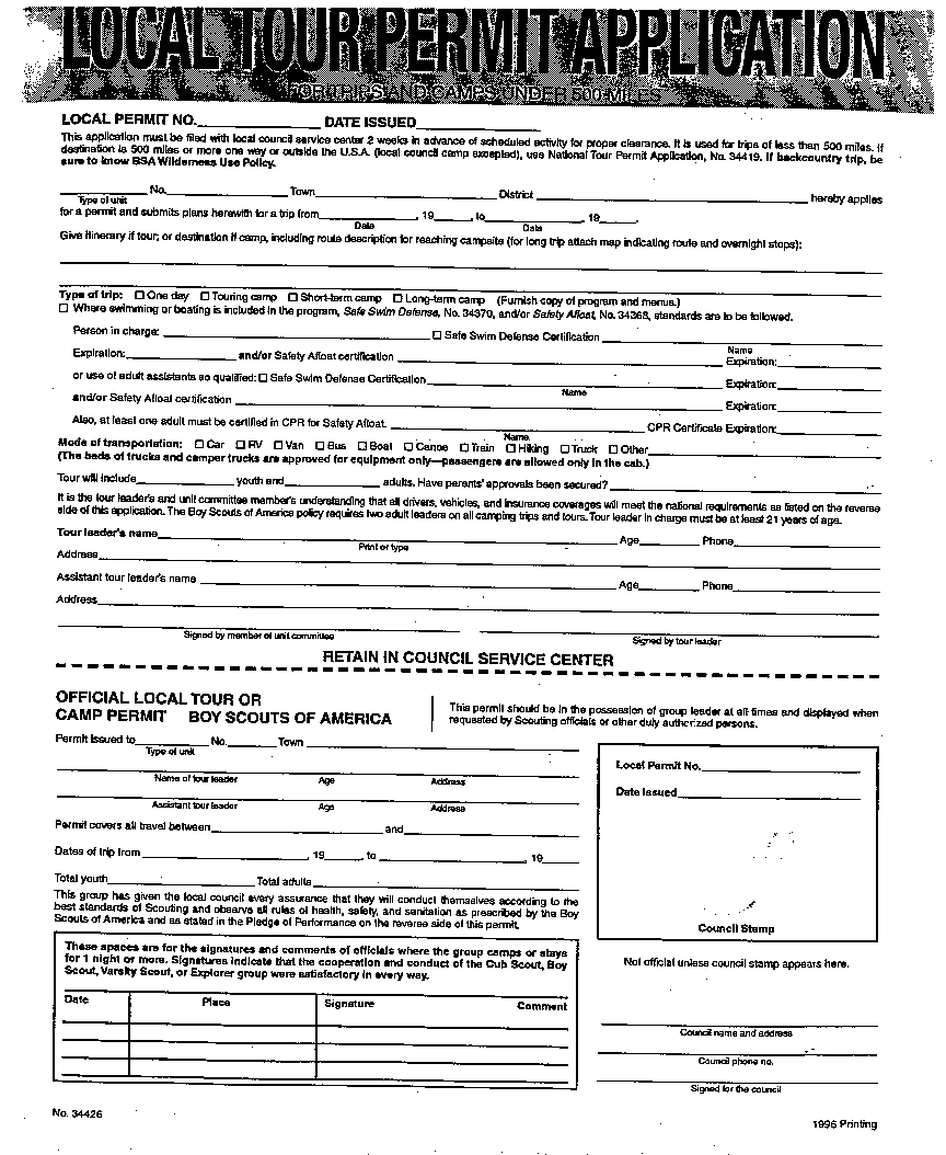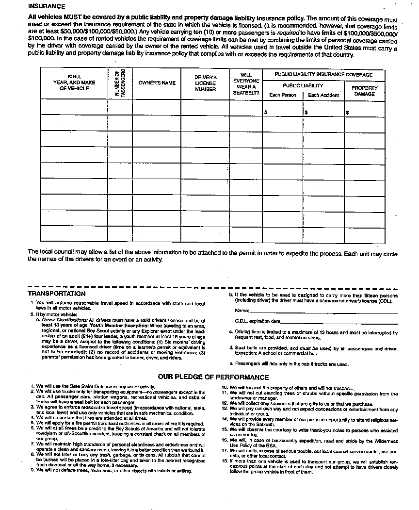 Anytime your den goes to a "go-see", fill out the info on this permit as best as reasonably possible and forward form or info to Cubmaster (Wes Smith: 766-9524)